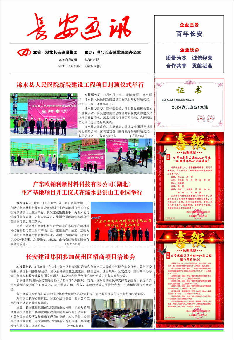 • 2025-09-27 湖北長(zhǎng)安建設(shè)集團(tuán)股份有限公司 榮獲2025湖北民營(yíng)企業(yè)100強(qiáng)稱(chēng)號(hào),位列第35名